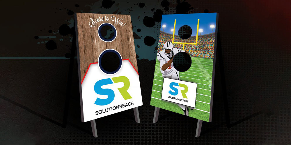 Toss-to-Win Prize Game is a promotional game with a minimal footprint. It includes 2 sets of 5 bags, each bag measuring 3in x 3in. Art imprint ranges from small branded imprints to full-board/custom designs. A fun promotional product for all demographics. With Toss-to-Win’s small footprint and addictive play it’s the perfect complement to a trade show or festival booth.